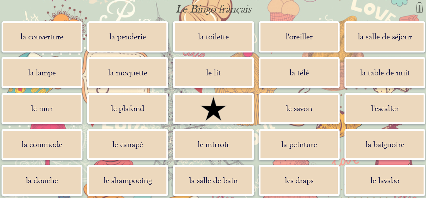 Test your students' knowledge of a foreign language with a bingo card. Say an English word, and students need to find the translation on their card and cross it off. Continue playing until someone gets a bingo! This activity helps students quickly recognize translations and strengthens their vocabulary.