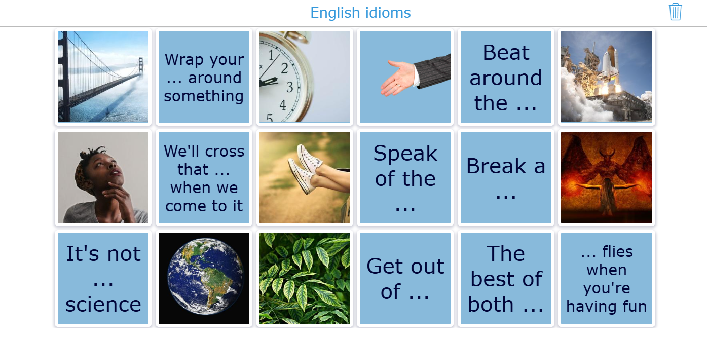Create a pair matching game with text, pictures, or audio and let students click the matching cards. Ask a fun or educational question or audio message upon completion.