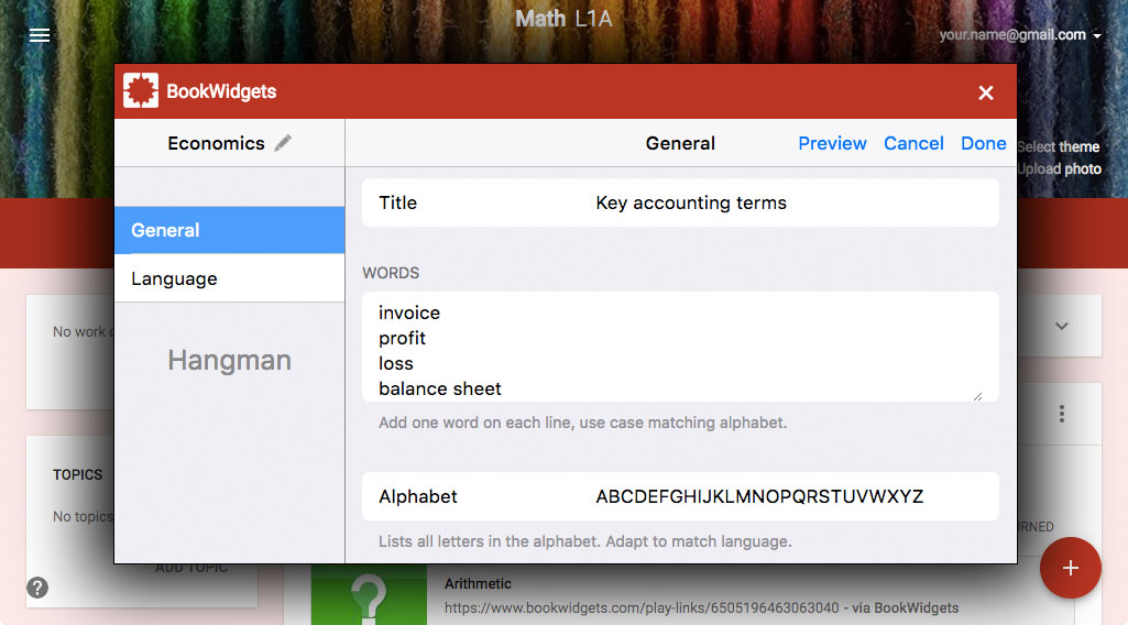 With BookWidgets, you can create more than 40 different types of exercises, and customize them with your own lesson content, right inside of your familiar Google Classroom environment.