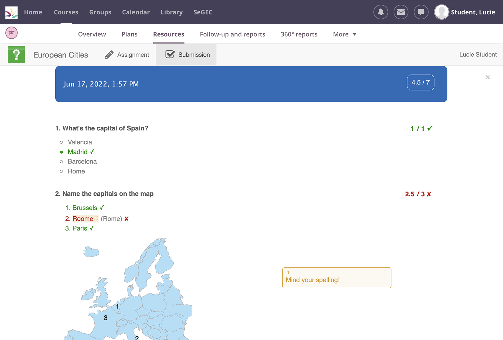 All student work gets automatically graded, while still letting you adjust where necessary. When you're done, return the work to your students via itslearning. Grades are automatically sent to the itslearning gradebook, where you can follow your students' work and evolution over time.