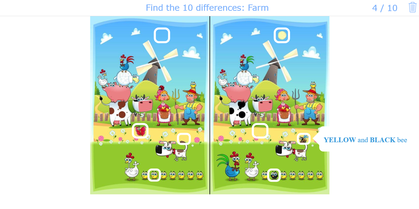 Create an interactive spot-the-difference game with popup labels that indicate the differences and even explain them.